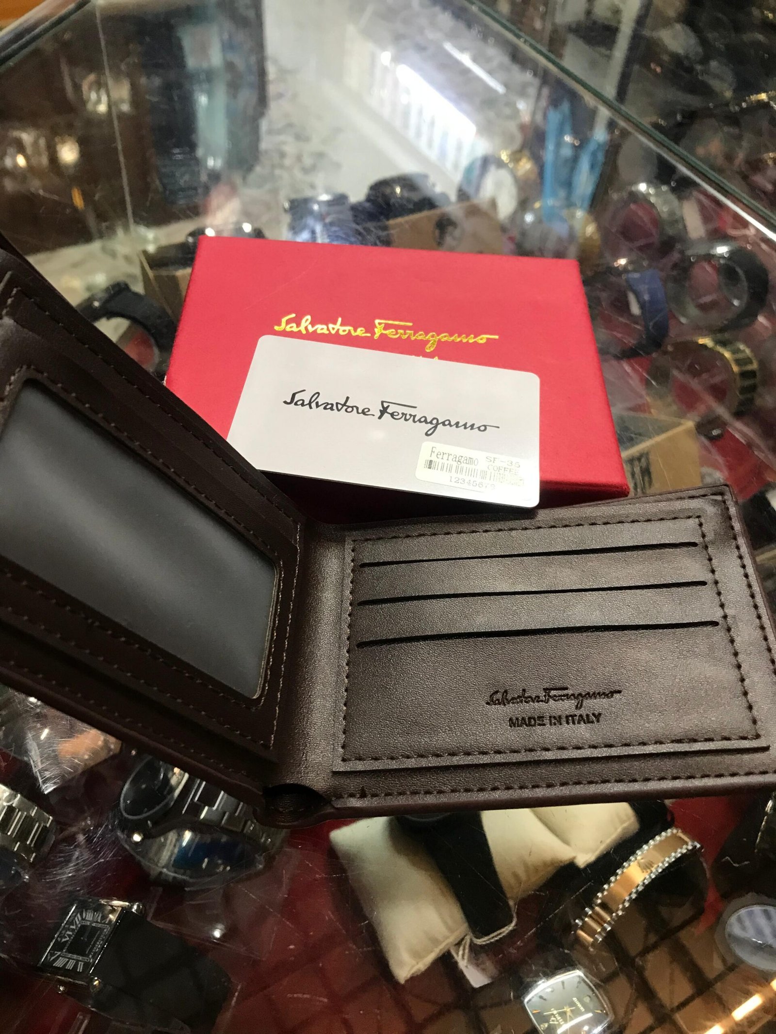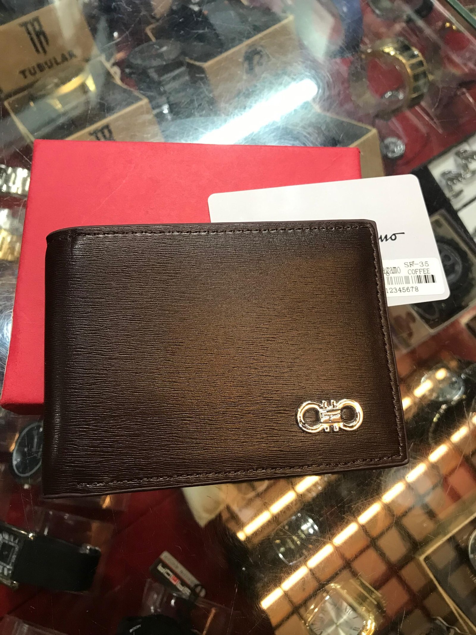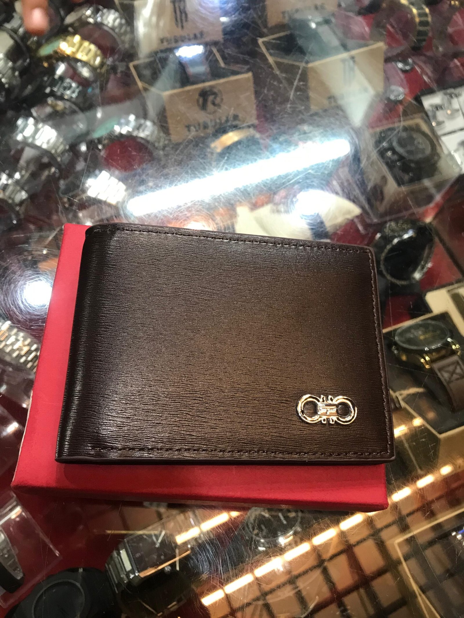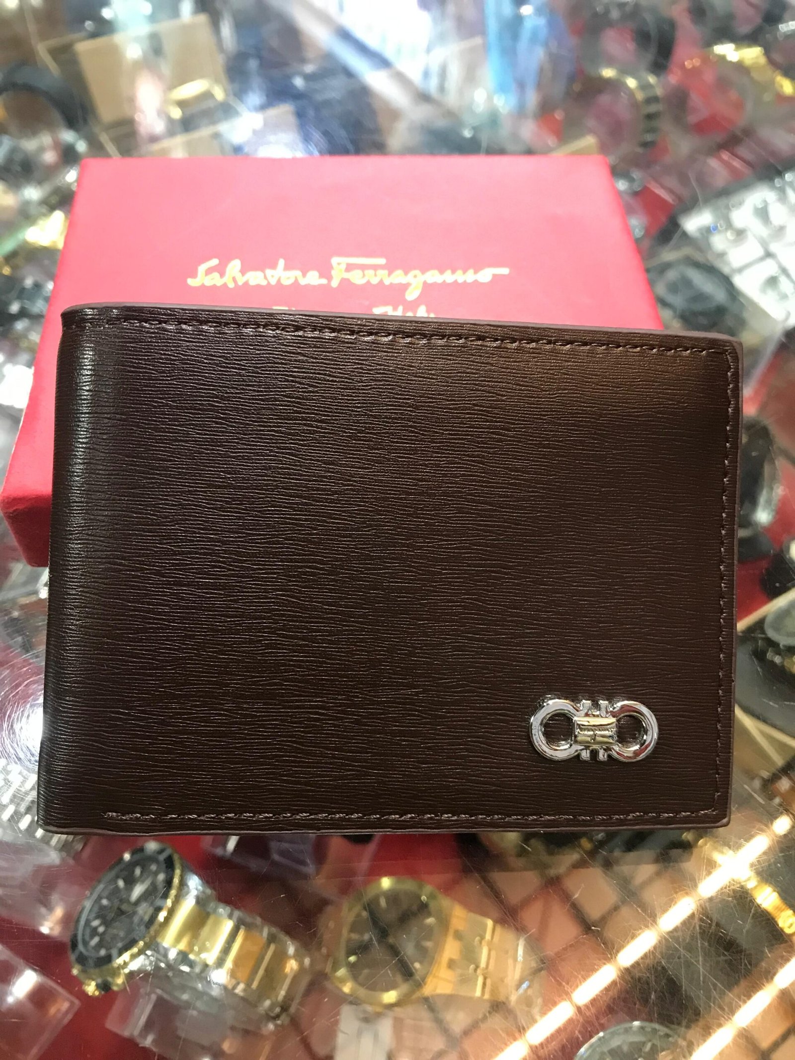 “Ferragamo ka yeh calf leather wallet—Italian craftsmanship ka nishan—Gancini plaque ke saath. Slim, stylish aur jo bhi use kare, uski elegance ek naya level par pochha jaata hai.”